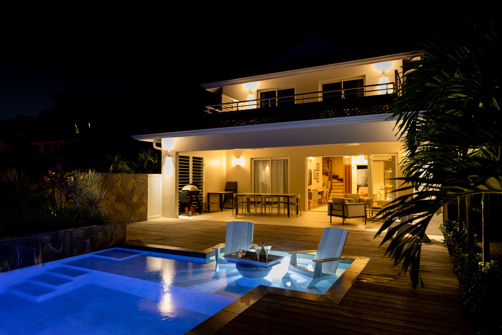 Newly built, this luxury villa offers a magnificent view of the Diamond Rock, a private swimming pool with a sunken beach and sunbathing in the water, and beach access at certain times of the year.