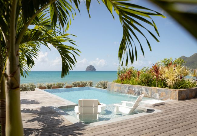 Newly built, this luxury villa offers a magnificent view of the Diamond Rock, a private swimming pool with a sunken beach and sunbathing in the water, and beach access at certain times of the year.