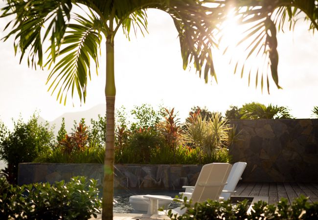 Newly built, this luxury villa offers magnificent views of the Diamond Rock, a private swimming pool with submerged beach and in-water sunbathing area, and beach access at certain times of the year. A long walk at sunset awaits you, returning for an aperitif on the covered terrace and enjoying the last rays over a complimentary rum upon your arrival.