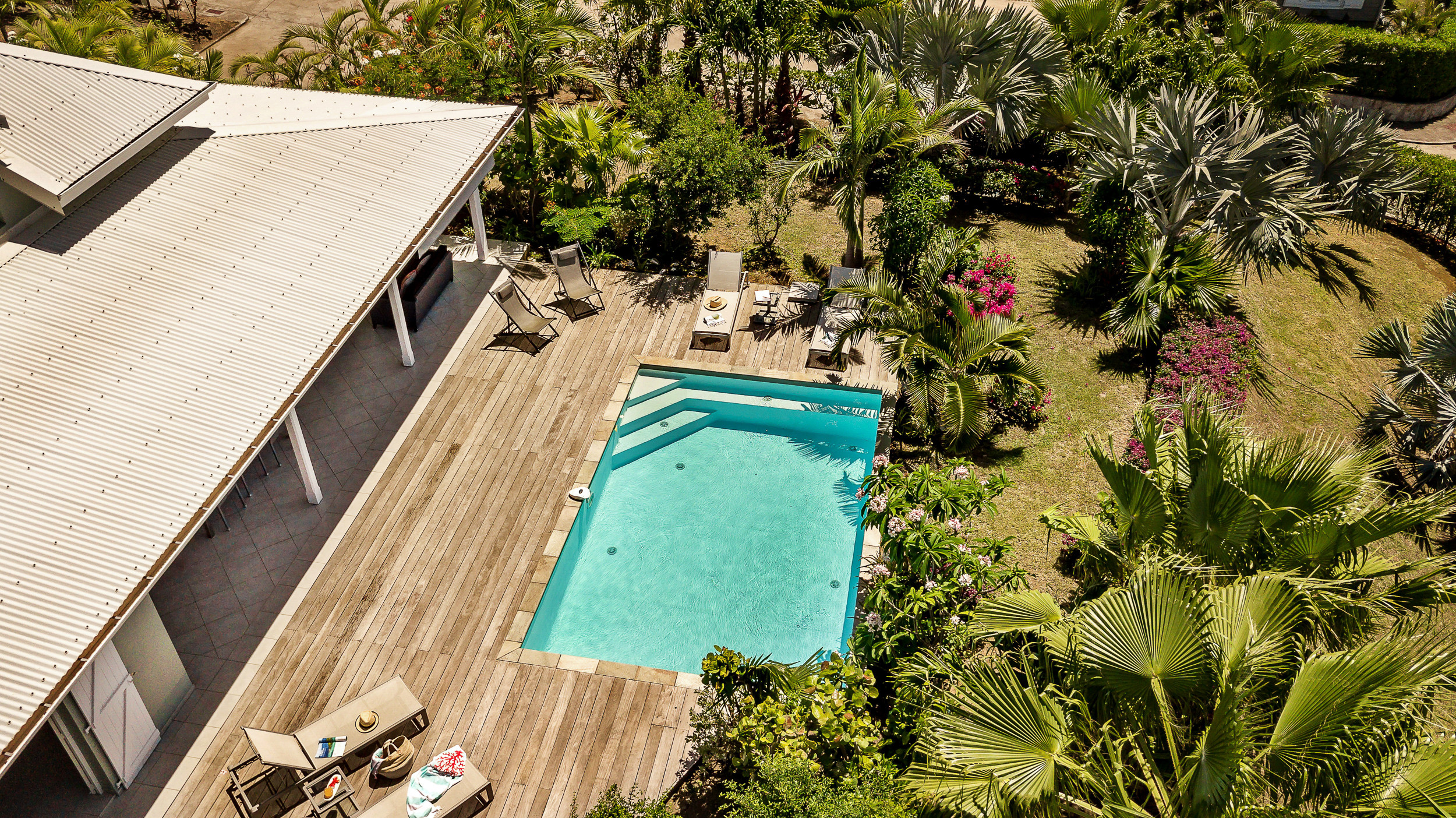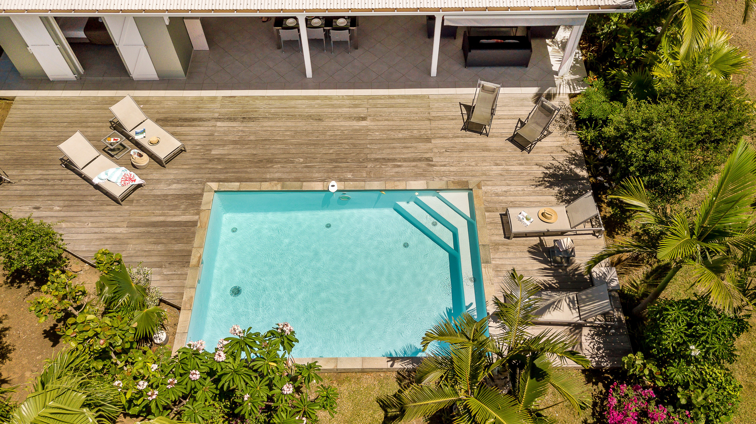 The private pool surrounded by a Creole garden allow you to bask in the Caribbean sun.