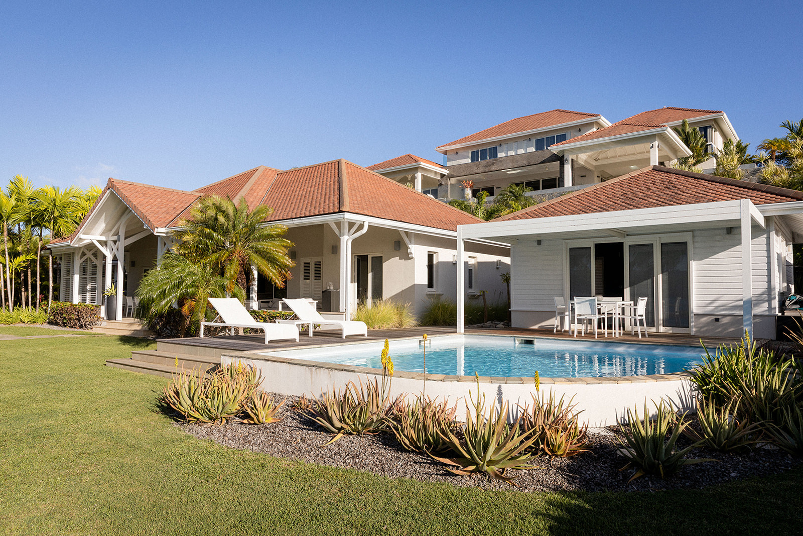 Cette villa se situe à la Pointe Jacob dans le quartier exclusif du Cap-Est, sur la commune du François.