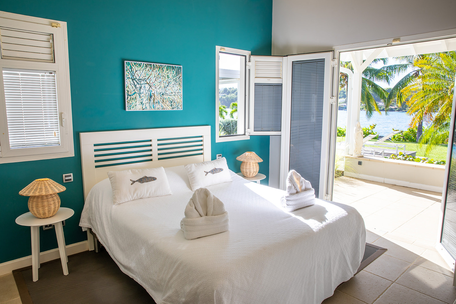 A l'étage une suite domine la terrasse et la mer.