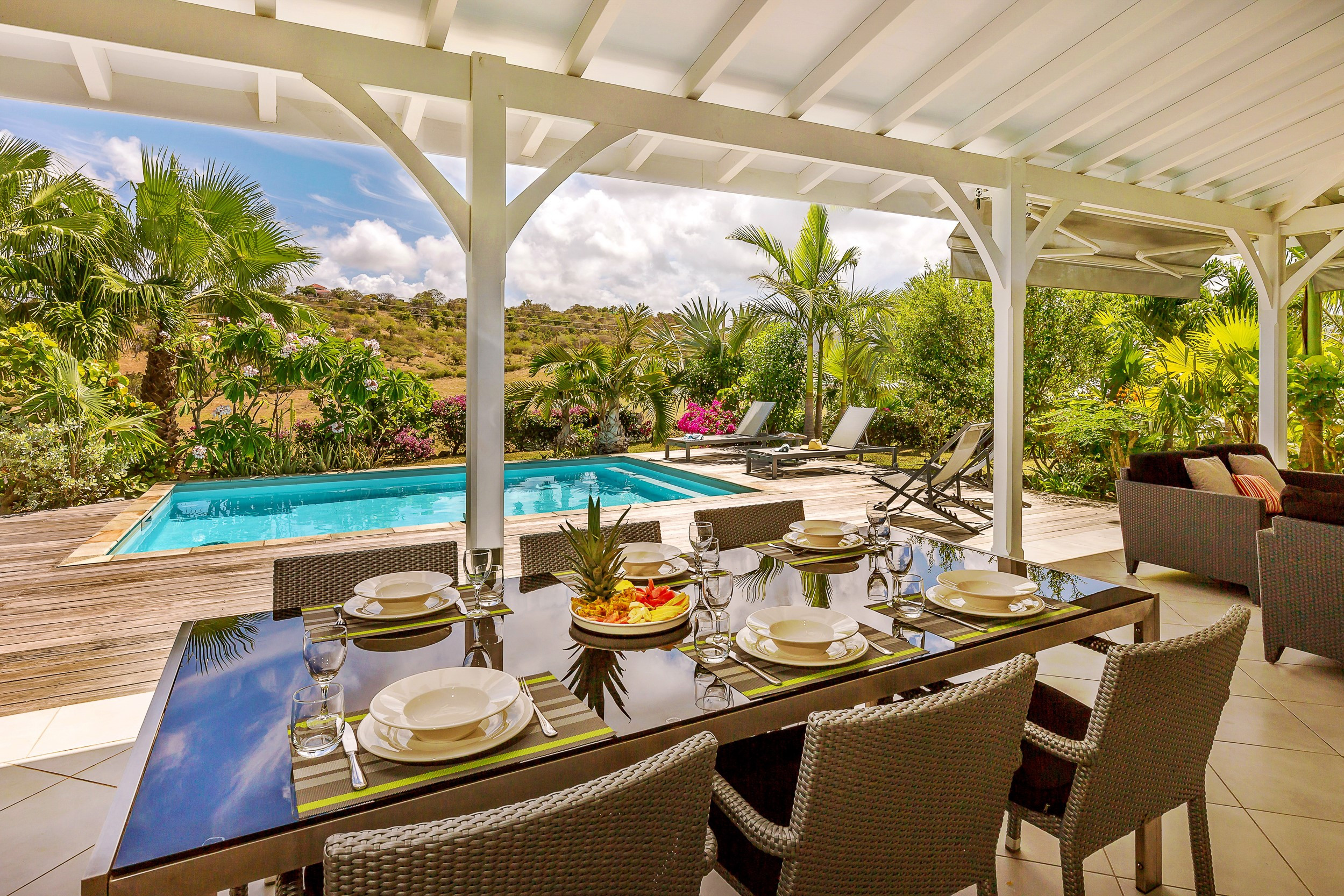 La terrasse de 41m² vous permettra de prendre vos repas en famille et de vous prélasser dans votre salon extérieur ombragé, mais aussi de profiter de la chaleur des Antilles lors de vos bains de soleil.