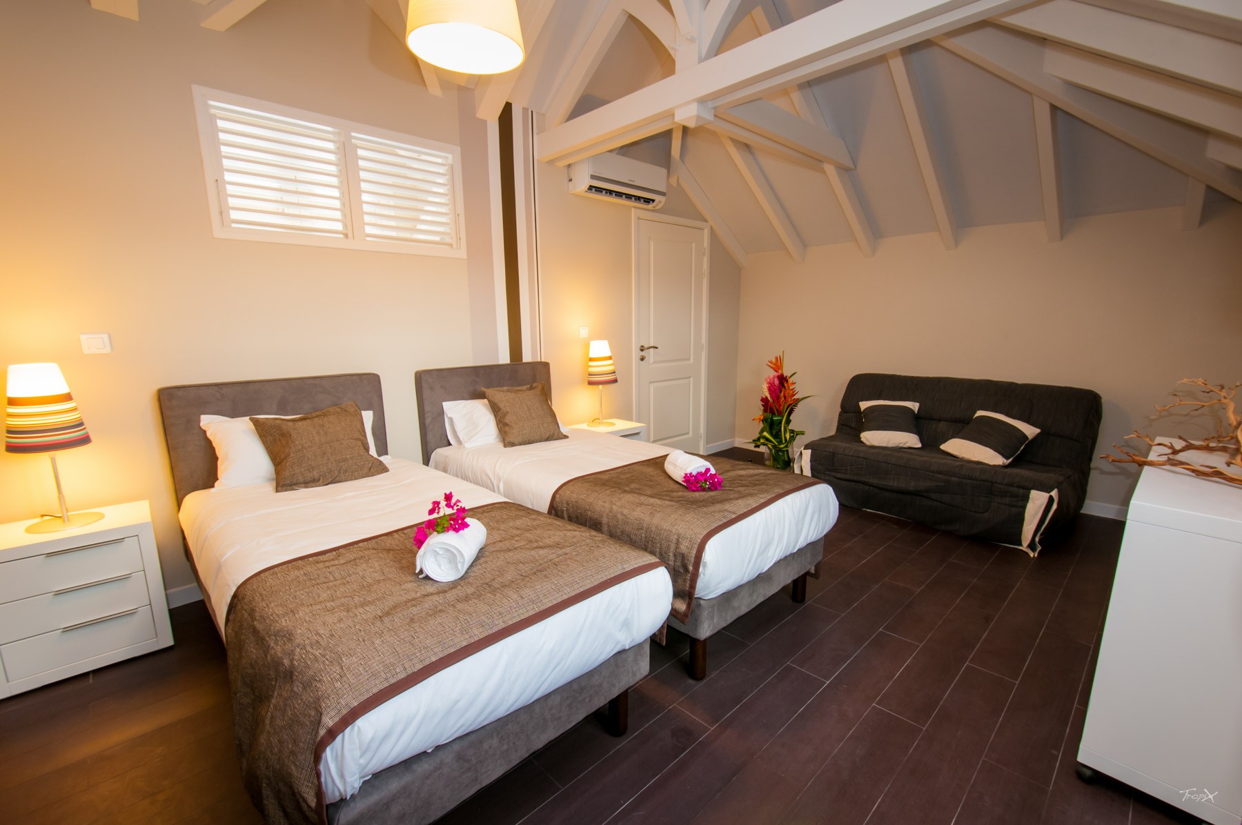 La terrasse de 41m² vous permettra de prendre vos repas en famille et de vous prélasser dans votre salon extérieur ombragé, mais aussi de profiter de la chaleur des Antilles lors de vos bains de soleil.