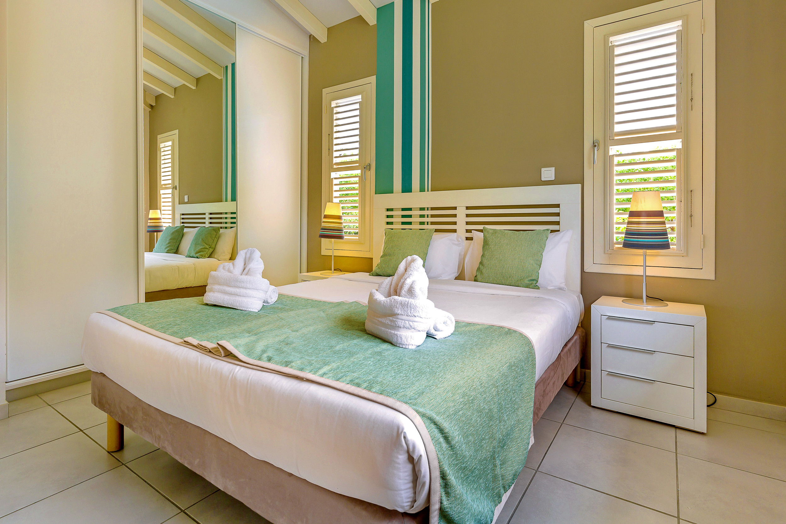 Cette villa 5* possède 4 chambres climatisées et confortables. Trois d’entre elles prennent place au rez-de-chaussée, dont une avec salle de bain attenante et ouverture sur la terrasse. Les deux autres sont séparées par une salle de bain et un WC indépendant. A l’étage, une grande chambre, dispose également d’une salle de bain et d’un dressing.