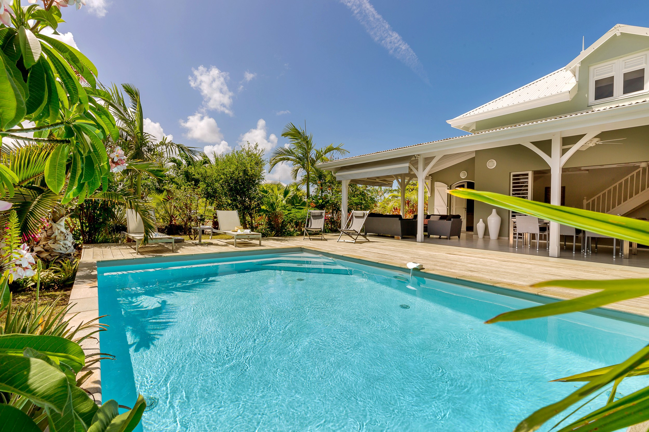 La piscine privée entourée d’un jardin créole vous permettre de vous prélasser sous le soleil des Antilles.